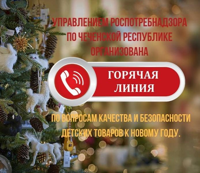 С целью обеспечения граждан необходимой и достоверной информацией в преддверии Нового года и зимних детских каникул, Управлением Роспотребнадзора по Чеченской Республике и Консультационным центром для потребителей при ФБУЗ «Центр гигиены и эпидемиологии в ЧР», проводится традиционная Всероссийская «горячая линия» по вопросам качества и безопасности детских товаров.