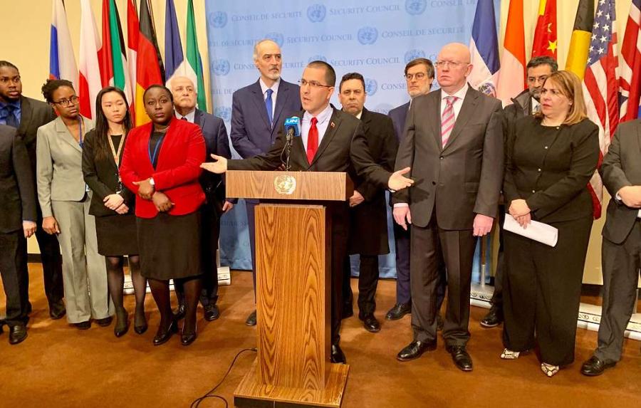 Группа государств, включая Россию, Венесуэлу, Иран, Китай и Сирию, намерена предпринять на международной арене скоординированные действия в защиту международного права в Венесуэле, включая возможность обращения в Генассамблею и Совет Безопасности ООН. Об этом заявил в четверг журналистам министр иностранных дел Венесуэлы Хорхе Арреаса, сообщает ТАСС.