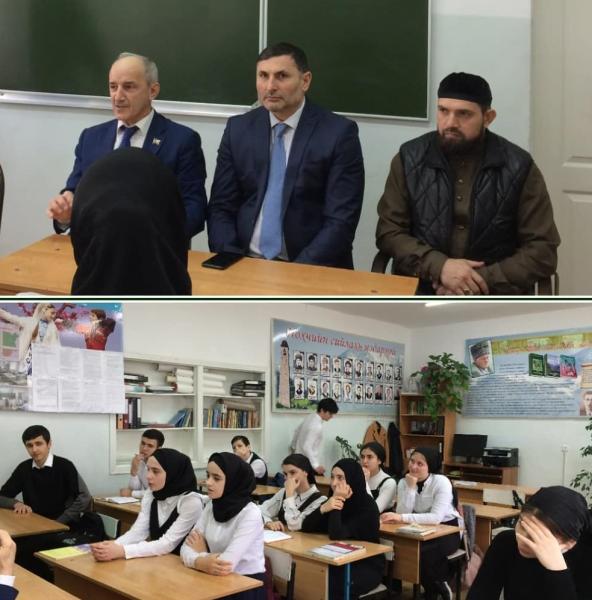 Депутаты Парламента Чеченской Республики Аднан Нагаев и Иса Бисаев провели патриотически-воспитательную беседу с учащимися СОШ №15 г. Грозного.