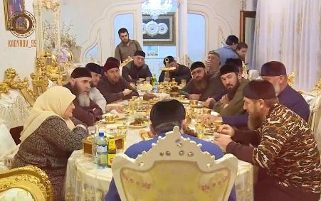 "Во вторник вечером дорогая мама Аймани Несиевна пригласила нас с дорогими братьями - муфтием Чечни Салахом-хаджи Межиевым, потомком великого шейха Баматгира-Хаджи Митаева - Муслимом Митаевым, депутатом Госдумы РФ Адамом Делимхановым, Советником Президента РФ Абубакаром Эдельгериевым, Председателем Парламента ЧР Магомедом Даудовым, министром МВД по ЧР Русланом Алхановым на ифтар.