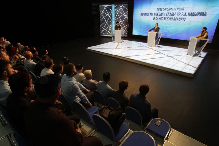 В большом павильоне ЧГТРК «Грозный» прошла пресс-конференция по итогам поездки Главы Чеченской Республики, Героя России Рамзана Кадырова в Саудовскую Аравию.