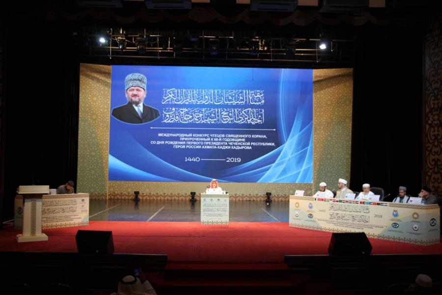 В Государственном театрально-концертном зале города Грозного проходит Международный конкурс чтецов Священного Корана, приуроченный к 68-й годовщине со дня рождения Первого Президента ЧР, Героя России Ахмата-Хаджи Кадырова.