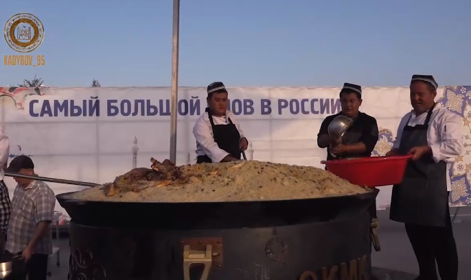 На своей странице в социальной сети ВКонтакте Глава Чечни сообщил, что специально для приготовления самого большого плова в России (около трёх тонн) приехали кулинары из Узбекистана.