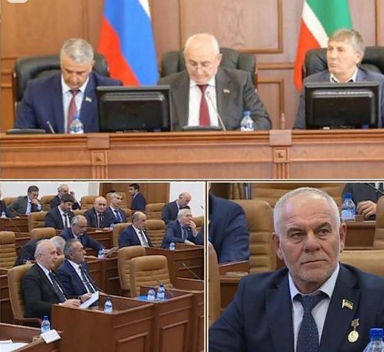 С вопросом о даче согласия на изменение Государственного герба Чеченской Республики в ходе заседания выступил председатель Комитета Парламента ЧР по вопросам законодательства, государственного строительства и местного самоуправления Ибрагим Ахматов. По данному вопросу было принято единогласное положительное решение.