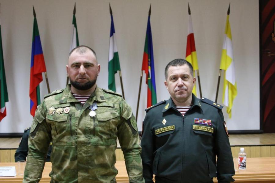 Ш. Делимханов от имени руководства и всего личного состава Управления Росгвардии по ЧР поздравил боевых товарищей с награадами.