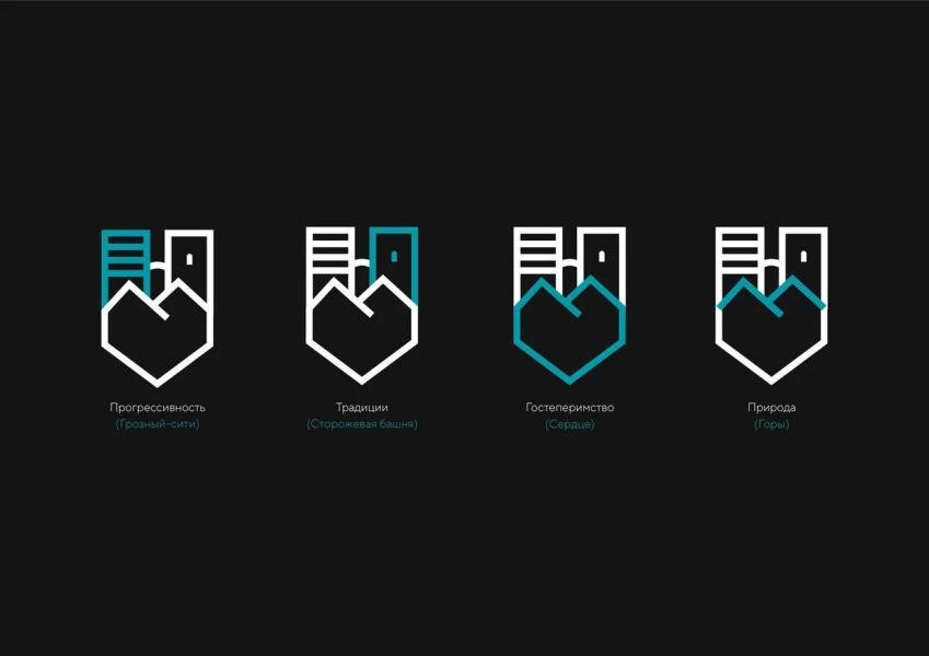 Новый логотип отображает в себе: прогрессивность (высотный комплекс «Грозный-сити» слева), традиции (сторожевая башня справа), гостеприимство (сердце внизу), природа (горы по центру), а также преемственность традиций.