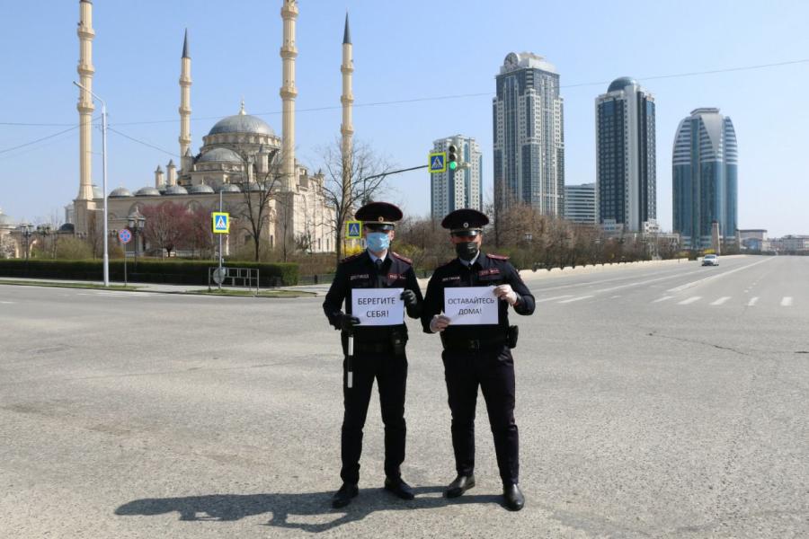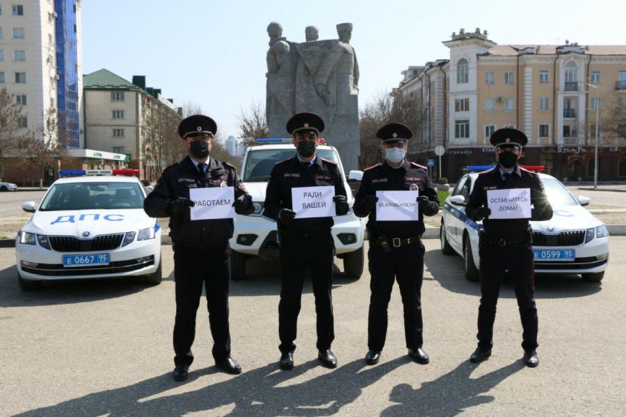 Сотрудники Госавтоинспекции Чеченской Республики присоединились к международной акции «Мы остаемся на работе ради вас, останьтесь дома ради нас!».