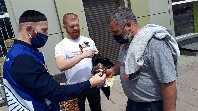 Ленточки раздаются в торговых сетях и аптеках. Кроме того, организаторы отмечают, что символ Великой Победы вручают получателям продуктовой помощи.