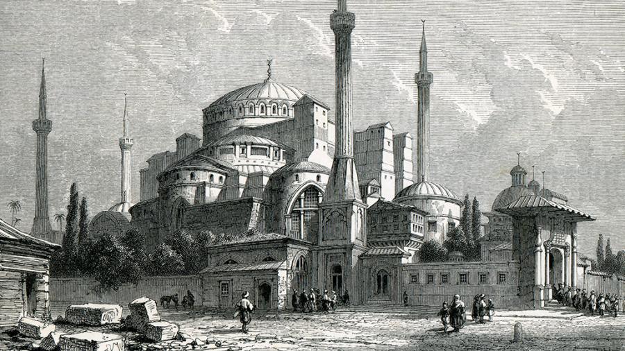В 1453 году после захвата Константинополя турками султан Мехмед II обратил собор в мечеть Айя-София. Многие христианские фрески и мозаики при этом сохранились. Собору удалось сохранить элементы христианской и мусульманской эпохи до наших дней.