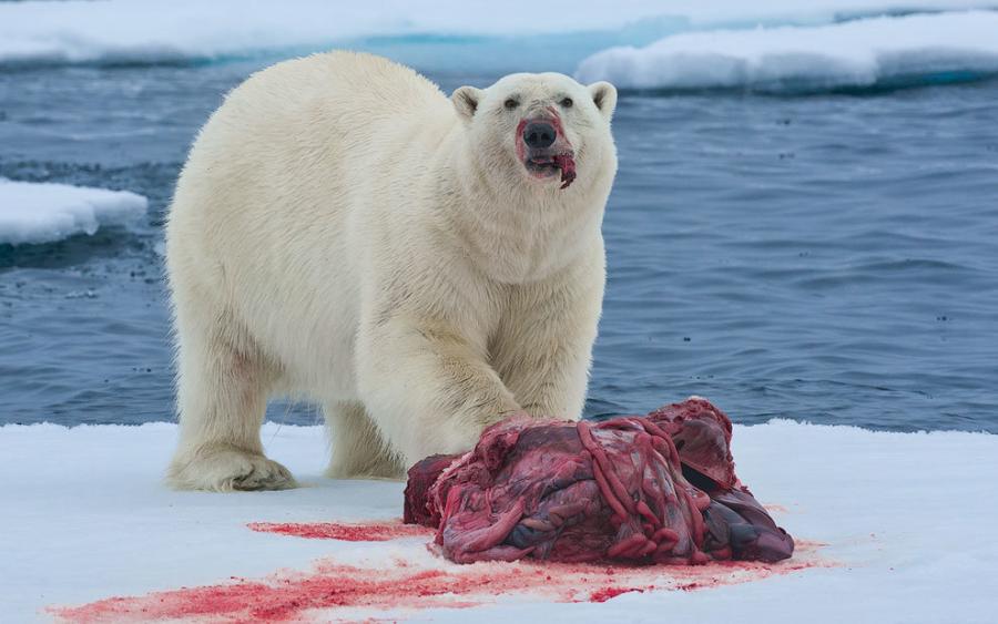 Зима для белого медведя — это сезон охоты. Он накапливает в теле жир, который дает ему энергию в теплое время года, когда он находится на суше и ест меньше. Если арктические зимы будут становиться теплее и короче, медведи не смогут охотиться, а, как следствие, им станет сложнее пережить летний период. Такое явление уже наблюдается, например, в южно-бофортовской популяции, численность которой в период «поста» падает на 25-50%. То же самое происходит в Гудзоновом заливе — это самая южная зона обитания белых медведей. Там их численность с 1987 года уменьшилась на 30%.