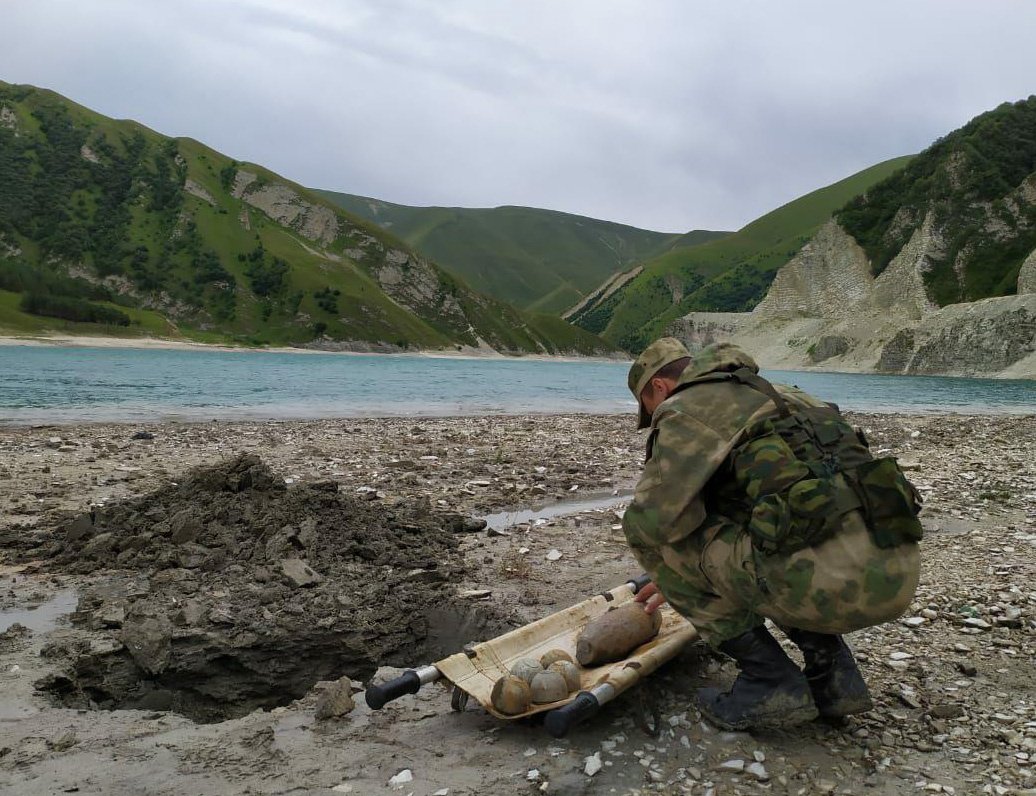 В Веденском районе Чеченской Республики пиротехнический расчет МЧС России обезвредил 5 авиационно-осколочных бомб и 1 артиллерийский снаряд, пролежавшие под землей более 20 лет.[/i