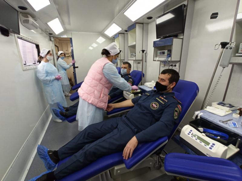 В мероприятии, приуроченной к 30-летию МЧС России, приняли участие около 60 сотрудников ведомства. Среди них и почетные доноры России, и те, кто впервые решили сдать кровь.