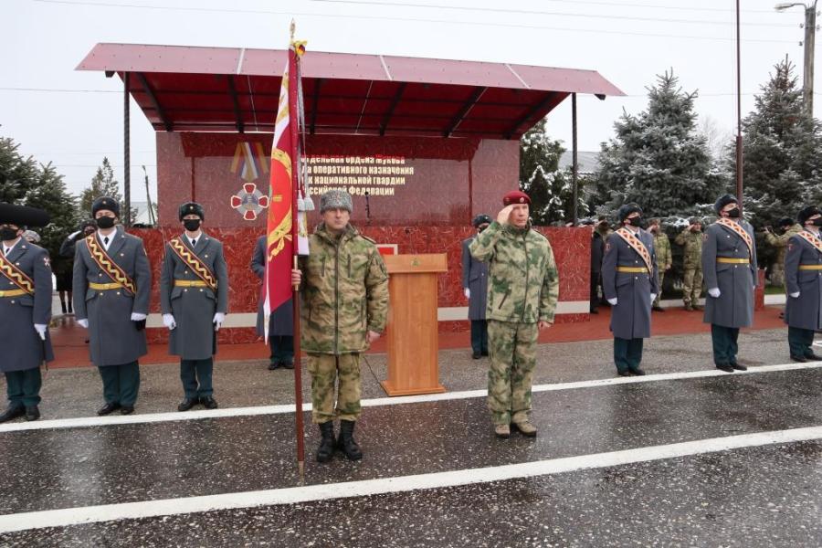 В ходе рабочей поездки в Чеченскую Республику директор Федеральной службы войск национальной гвардии Российской Федерации – главнокомандующий войсками национальной гвардии РФ генерал армии Виктор Золотов вручил отдельной ордена Жукова бригаде оперативного назначения Боевое знамя нового образца.