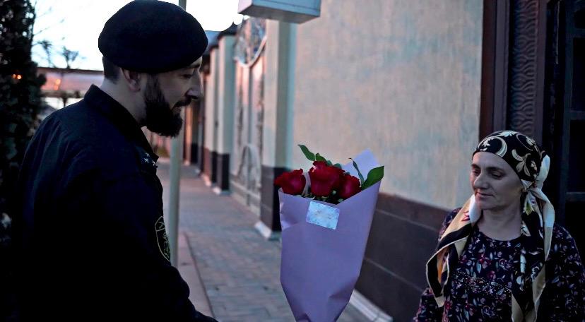 Правоохранители поздравили женщин с 8 марта и передали им цветочные букеты. Обращаясь к матерям, росгвардейцы выразили слова благодарности за воспитание героев, которые не моргнув глазом отдали свои жизни за мир и процветание нашего народа и региона.