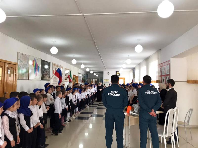 Инспекторы надзорного органа Главного управления МЧС России по Чеченской Республике обучили учащихся общеобразовательной школы №4 села Бачи-Юрт действиям в случае возникновения пожаров и других экстренных ситуаций.