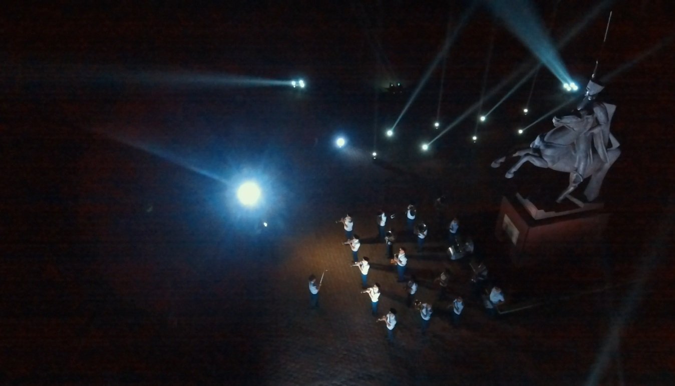 В рамках акции военный оркестр 46-ой бригады войск национальной гвардии Российской Федерации исполнил мелодии военных лет. Главным событием стало световое шоу - игра световых потоков была видна из разных точек столицы.