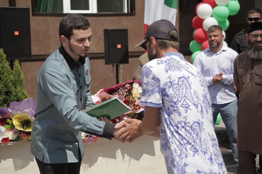 В своем вступительном слове М. Даудов поздравил владельцев новых квартир с новосельем от имени Главы ЧР Рамзана Кадырова и поблагодарил президента РОФ им. А.А. Кадырова Аймани Несиевну за оказанную помощь.