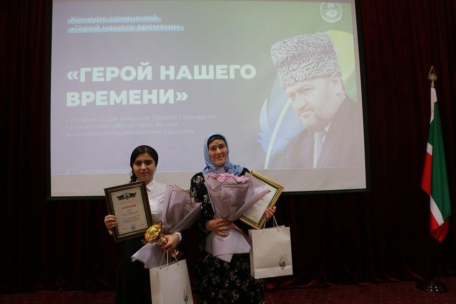 Победителями на лучшее сочинение посвященное А.А. Кадырову стали: 1 место - Асет Тазуева; 2 место - Карина Зайнулаева; 3 место - Медина Израилова.