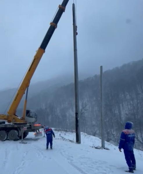 В технических мероприятиях задействовано более 50 специалистов энергокомпании и 9 единиц специальной техники. Сложные погодные условия, труднодоступная горно-лесистая местность, скалистый грунт – не стали препятствием для энергетиков. Работы ведутся непрерывно. Экономя силы и время, здесь же в горах специалисты разместили временный пункт проживания.