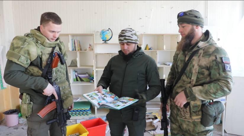 «Но увиденное внутри журналисты запомнят надолго. Среди поломанных школьных парт и стульев, разбитой мебели и разбросанных книг внимание привлекли учебники для детей начальных классов, изданные неким Министерством по вопросам реинтеграции временно оккупированных территорий Украины, разработанные по стандартам блока НАТО», - рассказал Рамзан Кадыров.