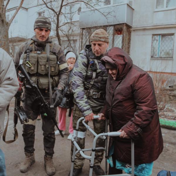 Чеченские бойцы вместе с населением города Рубежное (фото)