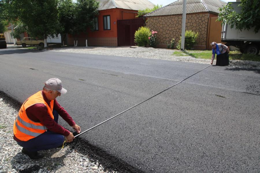 Представители Минавтодора ЧР, мэрии Аргуна, местного отделения ВПП «Единая Россия» и общественные контролеры ОНФ побывали с инспекцией на объекте. Общественники визуально осмотрели улицу, провели замеры параметров ширины и толщины асфальтобетона. По их словам, работы здесь проводятся качественно, проведенные замеры соответствуют проектным данным.