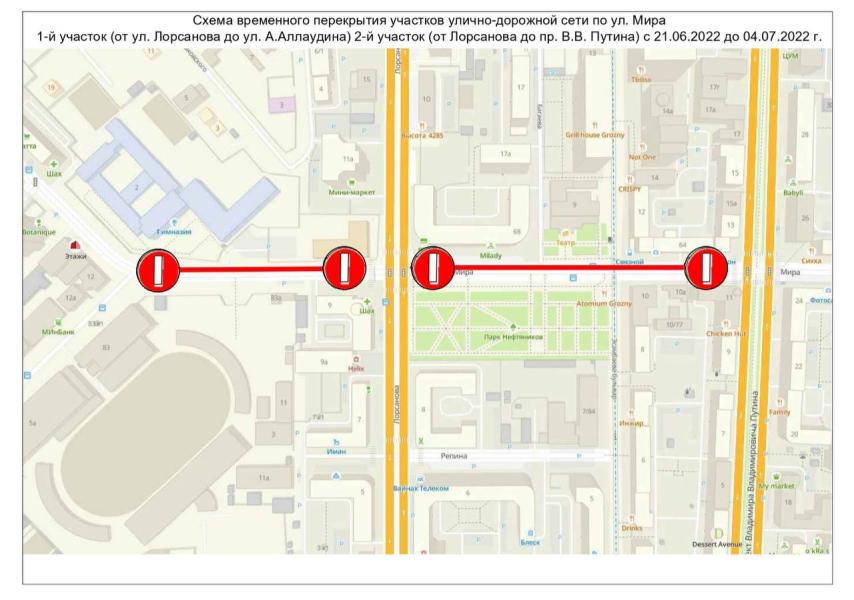С 21 июня до 4 июля включительно будет перекрыто автомобильное движение по улице Мира. Об этом сообщает мэрия Грозного.