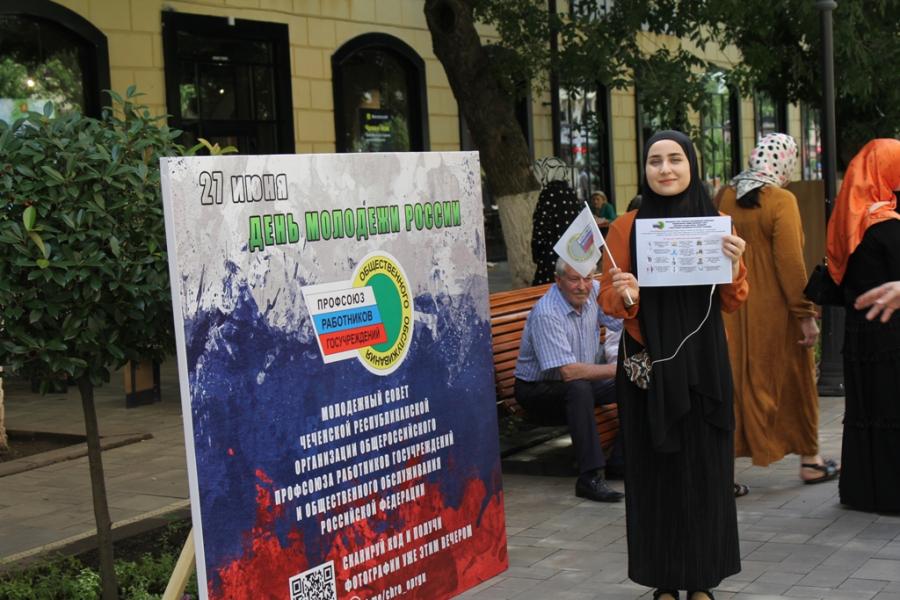 В рамках мероприятия молодой профактив чеченской республиканской организации общероссийского профсоюза работников госучреждений и общественного обслуживания Российской Федерации установил фото зону.