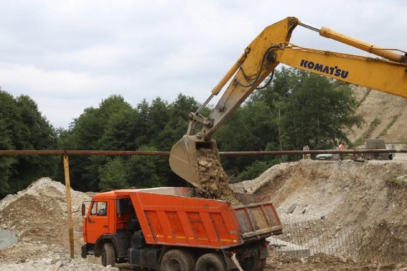 В настоящее время на мосту идут работы по устройству второй по счету опоры моста. Для временного проезда через реку установлены трубы, которые обеспечивают беспрепятственный проезд транспорту.