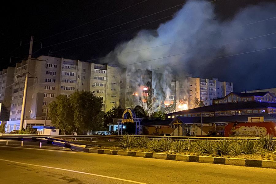 После падения самолета начался пожар площадью две тысячи квадратных метров на первых пяти этажах многоквартирного дома. Сейчас открытое горение ликвидировали, происходит проливка этажей и осмотр квартир.