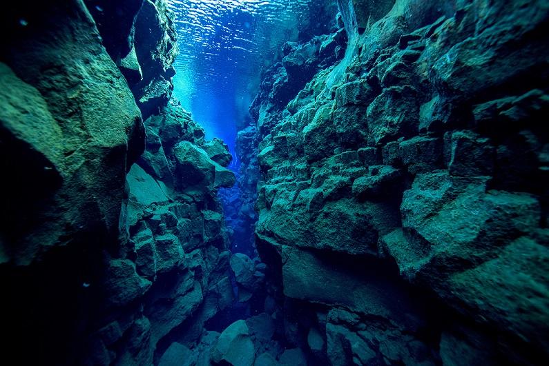 Расположенная в исландском национальном парке Тингвеллир, трещина Сильфра представляет собой разрыв, образовавшийся между Североамериканской и Евразийской плитами на расходящейся тектонической границе.