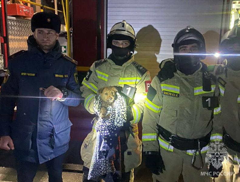В Грозном пожарные спасли упавшего в яму щенка
