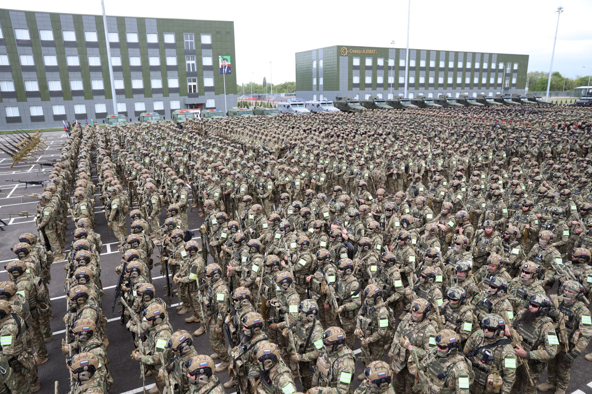 На плацу в полной боевой экипировке выстроились около 3300 человек личного состава полка, готовых в любую минуту отправиться на защиту Родины в зону проведения специальной военной операции.