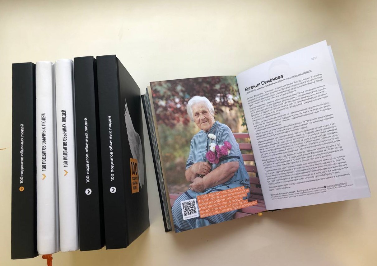 Проект «Подвиги» появился в 2013 году. Авторы проекта находят и публикуют героические истории со всей страны и мира. Всего издано 6 книг: три тома «100 подвигов обычных людей» и три тома «Волшебных сказок о детях-героях».