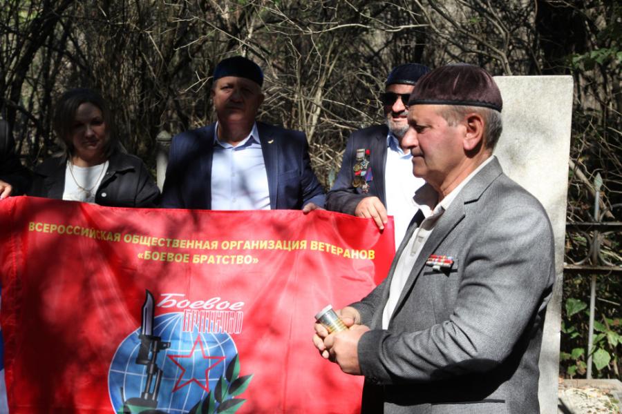 Чеченское региональное отделение Всероссийской общественной организации ветеранов «Боевое братство» по просьбе своих коллег из Иркутского областного отделения провело мероприятие по набору земли с могилы ветерана Великой Отечественной войны для музея в Беларуси. Об этом с места событий сообщил корреспондент «Грозный-информ».