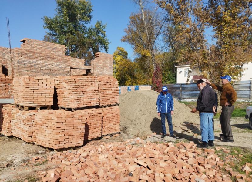 Ход строительства нового детского сада оценили сотрудники Ножай-Юртовского отделения партии вместе с Председателем совета старейшин района Умарсолтом Зайпулаевым.