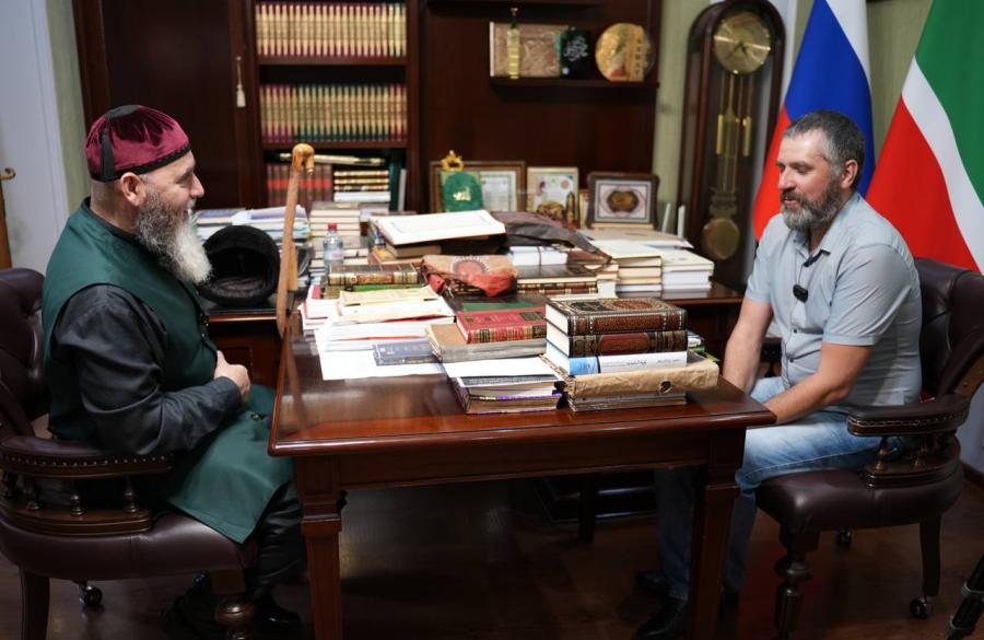 Салахь-Хаджи Межиев поздравил мужчину с принятием Ислама и подарил ему религиозную литературу для дальнейшего изучения религии.