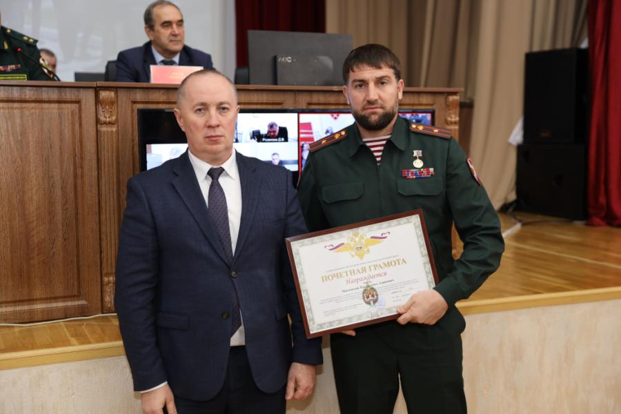 По итогам сбора было объявлено, что Управление Росгвардии по Чеченской Республике заняло первое место в служебно-боевой (служебной) деятельности по итогам 2024 года. Здесь же в торжественной обстановке медаль «Участнику специальной военной операции» была вручена командиру специального моторизованного полка «Север» имени А.А. Кадырова Грозненского соединения Росгвардии полковнику Мусе Бесаеву, Почетной грамотой ГУ МВД России по СКФО был награжден командир 94 полка оперативного назначения Грозненского соединения Росгвардии Хасмагомед Магомадов.