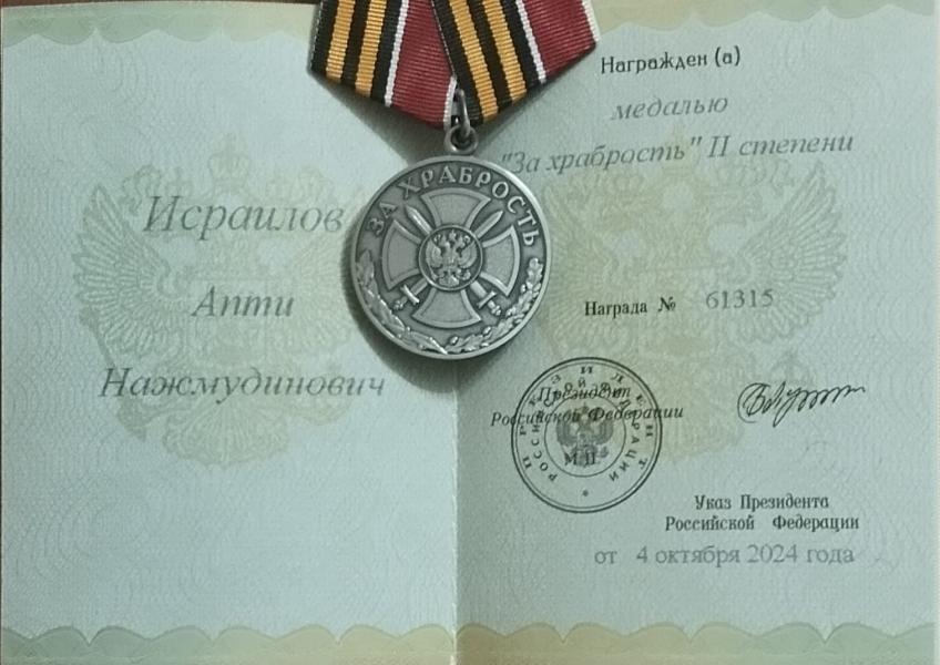 Боец находится в зоне проведения специальной военной операции с 2022 года, принимал участие во многих ключевых боестолкновениях с укронацистами. Командование отметило, что ефрейтор Исраилов проявил себя как храбрый, отважный и смелый боец.