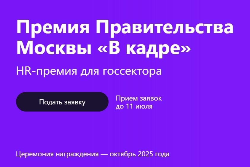 В соответствии с решением Мэра Москвы Правительство Москвы проводит HR-премию для госсектора «В кадре» (далее — Премия).