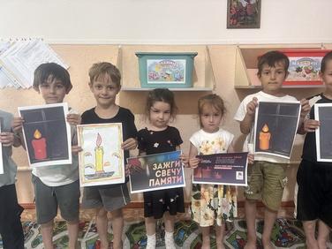 Воспитанники детского сада подготовили тематические рисунки и аппликации, изобразив символ акции — горящую свечу. Эти работы стали частью большого флешмоба, объединившего тысячи людей по всей стране. Педагоги провели с детьми беседы о мужестве защитников Отечества, рассказали о важности сохранения памяти о войне.
