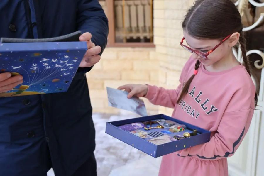 Так, маленькая Джамиля очень любит читать. Одним из её любимых произведений является книга "Маленький принц" - добрая и поучительная история о дружбе, ответственности и важности духовных ценностей. В своей записке девочка попросила подарок, связанный с этим произведением. По поручению Министра внутренних дел по Чеченской Республике, генерал-лейтенанта полиции Аслана Ирасханова сотрудники ведомства исполнили её желание, передав Джамиле тематический подарочный набор «Маленький принц».