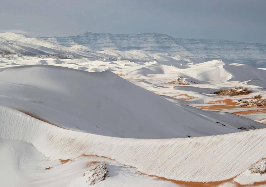 Редкое природное явление зафиксировали в пустыне Сахара — часть знаменитых оранжевых дюн покрылась снегом. Как пишет Daily Mail, снегопад прошёл в алжирском городе Айн-Сефра, где температура неожиданно опустилась ниже нуля.