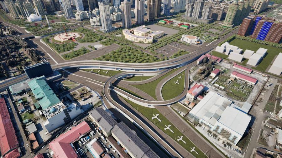 - В Грозном строят две многоуровневые транспортные развязки