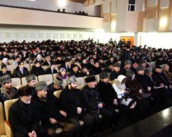 В мероприятии, прошедшем во Дворце культуры г. Урус-Мартана, приняли участие депутаты Парламента ЧР Усман Оздамиров и Зелимхан Абубакаров, руководство района, старейшины, депутаты городского и районного советов, главы сел, представители духовенства и правоохранительных органов, молодежь – всего более тысячи человек.