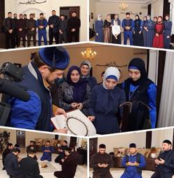 "Помощник Главы ЧР Хутмат Дадаева, курирующая "Иман", и активистки клуба преподнесли мне очень дорогой подарок - Священный Коран. Я призвал участниц клуба и всех жителей Чечни прочитать до 13 января по сто тысяч раз салават в честь любимого Пророка Мухаммада (да благословит Его Аллах и приветствует)", - поделился Р. Кадыров.