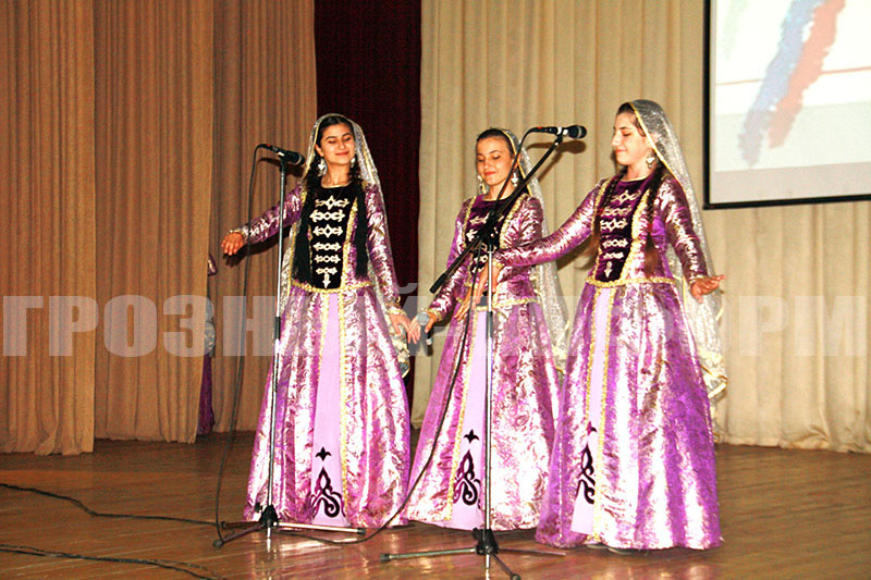 Далее, русский, кумыкский и ногайский национальные культурные центры, а также известные чеченские артисты выступили с небольшой концертной программой.