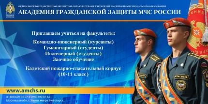 Академия гражданской защиты МЧС России приглашает абитуриентов, желающих обучаться на гуманитарном или инженерном факультетах.