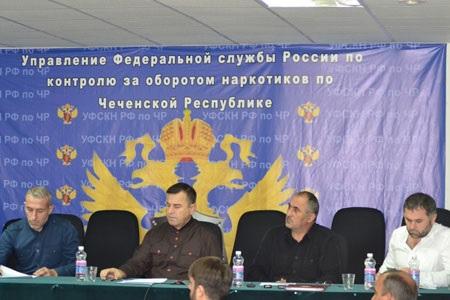 От Чеченской Республики в совещании приняли участие начальник Управления ФСКН России по ЧР полковник полиции М.Таймасханов, заместитель начальника УФСКН России по ЧР полковник полиции А.Зармаев, секретарь Антинаркотической комиссии ЧР Р.Садулаев, начальник ГМВП УФСКН России по ЧР майор полиции А.Шахабов, специалист 1-го разряда ГИОС УФСКН России по ЧР А.Ахмадов.