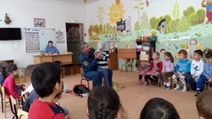 Сегодня в Наурском районе в с. Новотерское дети из детского сада «Солнышко» получили огромное удовольствие от мероприятия, которое провели сотрудники МЧС.